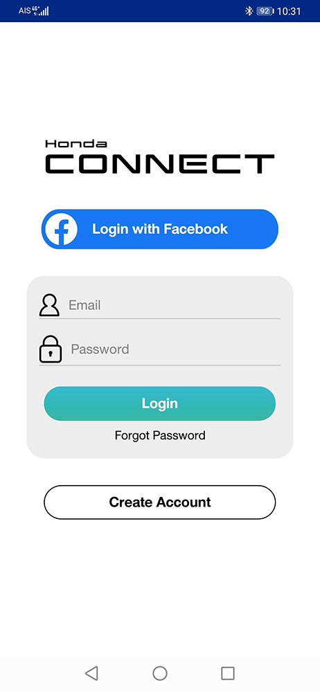 หน้าตาแอปพลิเคชั่น Honda CONNECT