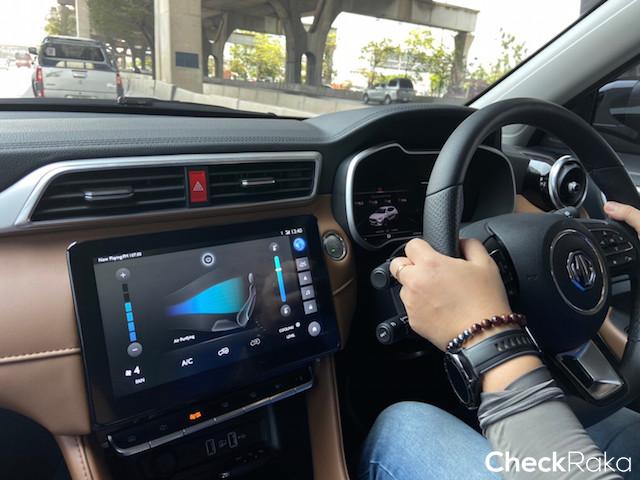 New MG ZS รุ่น X+ ที่เราได้ทดลองขับ มีระบบ Cruise Control ที่ปลายก้านซ้ายล่างไฟเลี้ยว (รุ่นนี้ไฟเลี้ยวยังอยู่ซ้ายมือ ขวาที่ปัดน้ำฝน) โดยการตั้งค่าง่ายๆ พลักก้านเข้าหาเรา เซทจากความเร็วที่เราขับใน ขณะนั้น และกด Set ที่ปุ่มปลายก้าน เป็นอันเสร็จ เร่งความเร็วเพิ่มรถจะยังไม่คลาย แต่ถ้าแตะเบรค ระบบจะกลับมาเป็นการขับขี่แบบปกติ