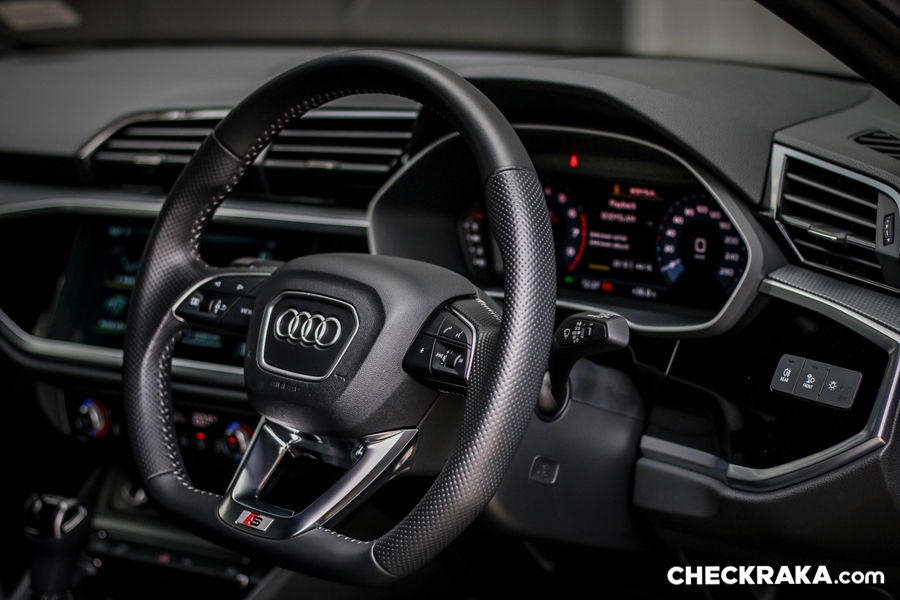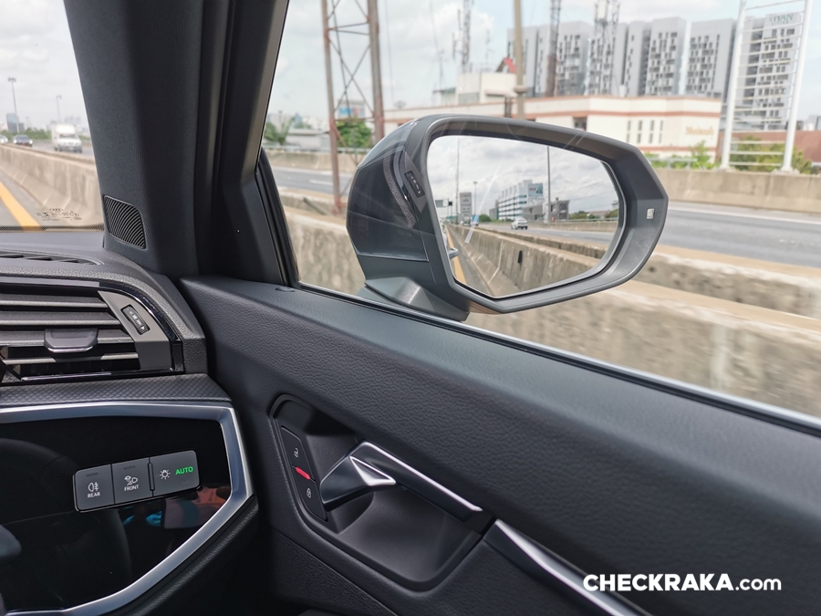 ความสะดวกสบายใน Q3 Sportback สัมผัสได้ตั้งแต่กุญแจรีโมทแบบ กุญแจแบบ Comfort key พร้อมระบบเปิด-ปิดบานประตูท้ายโดยไม่ต้องใช้มือ ปุ่ม Push start เบาะปรับไฟฟ้าคู่หน้าที่ปรับได้เยอะถึง 8 ทิศทาง และปรับยะระรองน่องได้ด้วย พวงมาลัยปรับระดับได้แต่ยังไม่ใช่ระบบไฟฟ้า กระจกมองข้างกางออกอัตโนมัติพร้อมระบบไล่ฟ้า