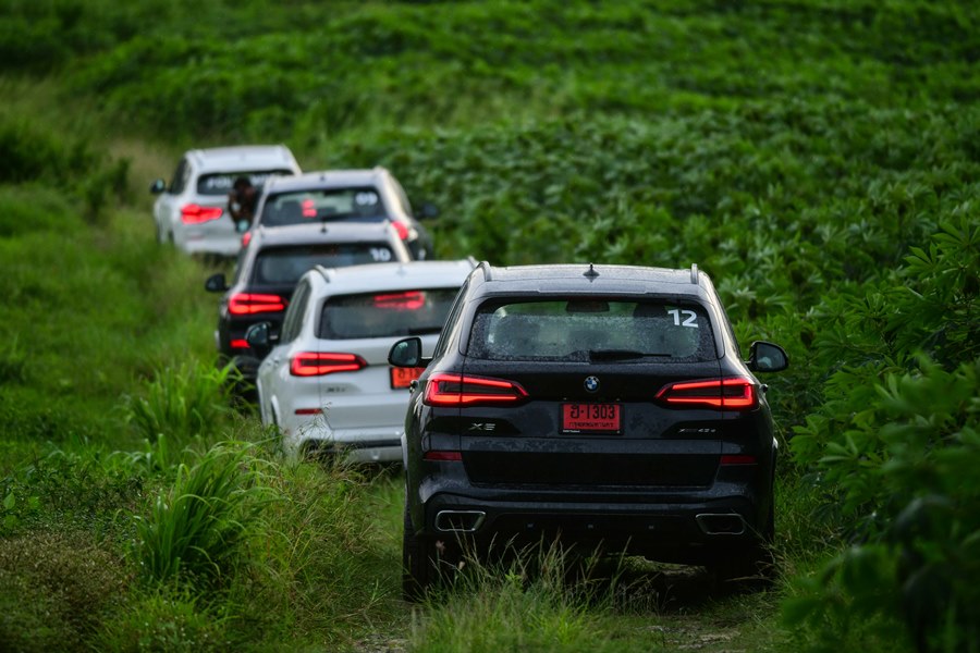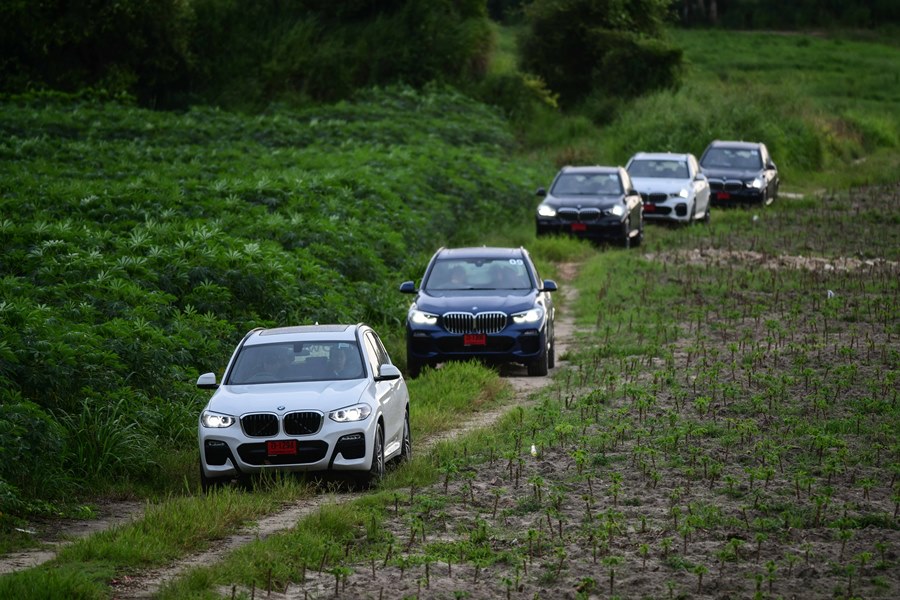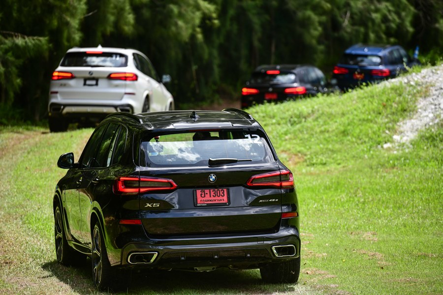 ขับทดสอบ บีเอ็มดับเบิลยู X5 xDrive45e M Sport (4,999,000 บาท) ต่อเนื่อง โดยเน้นให้เห็นสมรรถนะที่ไปได้มากกว่าออนโร้ด เริ่มจากการขับทดสอบและทำความคุ้นเคยกับระบบช่วยเหลือต่างๆ ตามเส้นทางและสเตชั่นที่กำหนดไว้ในสนามฯ เช่น การเบรกกระทันหันบนทางกรวด, การใช้กล้องหน้าช่วยในการดูเส้นทางไต่ทางลาดชัน, ระบบช่วยลงบนทางลาดชัน, การปรับค่าความสูงของตัวรถ ซึ่งปรับไว้สูงสุด พร้อมกับเลือกปรับโหมดใหม่เป็น adaptive ซึ่งนับเป็นมาตรฐานใหม่ที่น่าประทับใจเพราะกล่องควบคุมสามารถวิเคราะห์เลือกโหมดที่เหมาะและค่าต่างๆ ให้เหมาะสมกับสไตล์และสถานการณ์จริงของผู้ขับมากที่สุด ซึ่งมักแตกต่างกันอยู่ตลอดเวลา หลังจากขับจนคุ้นเคยกับตัวรถและระบบช่วยเหลือต่างๆ พอสมควร ทางทีมงานก็นำออกขับด้านนอกเพื่อลองขับทั้งแบบออนและออฟโร้ด เส้นทางออนโร้ดเป็นถนนสายรองด้านในบริเวณโป่งดินดำ ซึ่งค่อนข้างแคบ X5 ใหม่ สามารถทะยานไปข้างหน้าได้อย่างมั่นใจและให้มุมมองไกลชัดเจนด้วยขุมพลังเครื่องยนต์เบนซิน 6 สูบเรียง 3.0 ลิตร TwinPower Turbo 286 แรงม้า พร้อมเทคโนโลยีบีเอ็มดับเบิลยู EfficientDynamics และเจเนอเรชั่นที่ 4 ของเทคโนโลยีบีเอ็มดับเบิลยู eDrive สุดล้ำ มอเตอร์ไฟฟ้าส่งกำลังสูงสุดที่ 113 แรงม้า ตัวแบตเตอรี่ลิเธียมไอออนจุพลังงานไฟฟ้าได้กว่า 24 กิโลวัตต์ชั่วโมง โดยระบบไฟฟ้าทั้งหมดได้รับการพัฒนามาเพื่อให้มีการจัดการพลังงานอย่างมีประสิทธิภาพยิ่งขึ้น ซึ่งส่งผลให้ระบบปลั๊กอินไฮบริดของบีเอ็มดับเบิลยู X5 xDrive45e M Sport ประหยัดพลังงานและเชื้อเพลิงสูงสุด เมื่อถึงทางออฟโร้ดที่เป็นเส้นทางรถชาวบ้านวิ่งจริงๆ ผ่านไร่มัน หญ้าสูง หลุมบ่อโคลน และแอ่งน้ำ ซึ่งโหมดที่ใช้ก็เป็นอแดปทีฟตลอด ตัวรถสามารถขับผ่านไปได้อย่างสบายๆ ทุกอุปสรรค และเป็นภาพที่ไม่ค่อยได้เห็นกันว่ารถพรีเมียมเอสเอวีอย่าง X5 มีศักยภาพขับบนเส้นทางออฟโร้ดได้สบายขนาดนี้