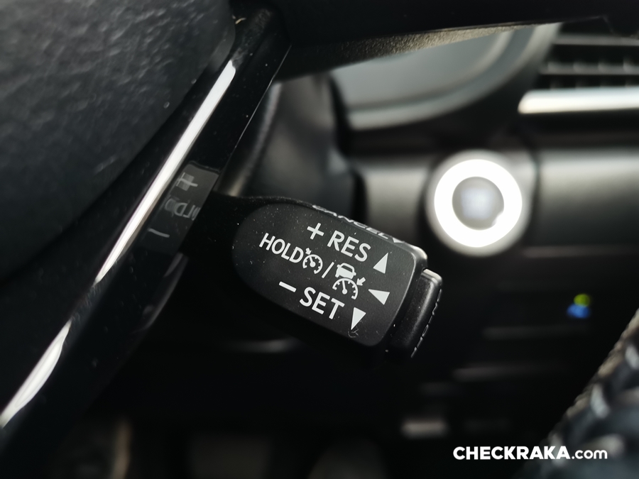 ระบบควบคุมและปรับลดความเร็วอัตโนมัติ (Dynamic Radar Cruise Control) ระบบควบคุมความเร็วแบบแปรผัน สามารถตั้งความเร็วได้ที่ก้านเล็ก ๆ ทางขวาของพวงมาลัย ด้วยการกดปุ่มที่ปลาย จนขึ้นรูปนาฬิกาบนหน้าปัด และดันก้านลงเพื่อ SET ตั้งความเร้วจากที่ใช้งานอยู่ขณะนั้น ตั้งความเร็วด้วยการโยกขึ้น (บวก+) หรือ ลง (ลบ-) ระบบเรดาร์จะทำการตรวจจับรถยนต์คันหน้าให้เว้นระยะโดยจะเร่งและลดความเร็วให้โดยอัตโนมัติ นับว่าสะดวกเมื่อต้องเดินทางไกลยาว ๆ และหากใช้ควบคู่กับระบบเตือนเมื่อออกนอกเลน พร้อมหน่วงกลับอัตโนมัติ (Lane Departure Alert) นับว่าเพิ่มความสะดวกสบายมากขึ้นไปอีกขั้นครับ