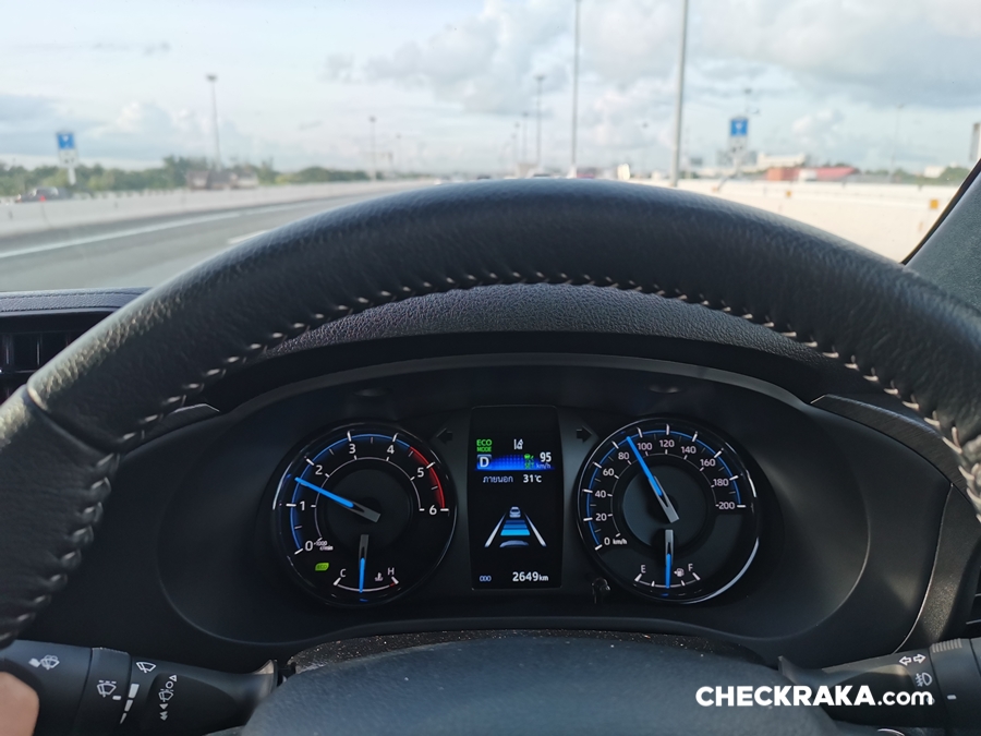 ส่วนในโหมด POWER (PWR) แต่นอนว่าให้ทั้งแรงทั้งกำลังใช้งานด้วยการคงรอบเครื่องยนต์สูง ๆ เอาไว้ให้เรียกใช้งานอย่างเต็มที่ จึงซดพอสมควร ส่วนในโหมดปกติ (คือไม่กดปุ่มใด ๆ เลย) ก็จะมีอัตรากินน้ำมันน้อยกว่าแบบ PWR แต่ก็ยังกินจุกว่า ECO พอสมควรครับ สรุปว่าเลือกโหมดการใช้งานให้เหมาะสมกับความเป็นจริง ก็จะได้ประสิทธิภาพที่ดีที่สุดจากเครื่องยนต์ 2.8 ลิตร 204 แรงม้า แรงบิด 500 นิวคันเมตร!