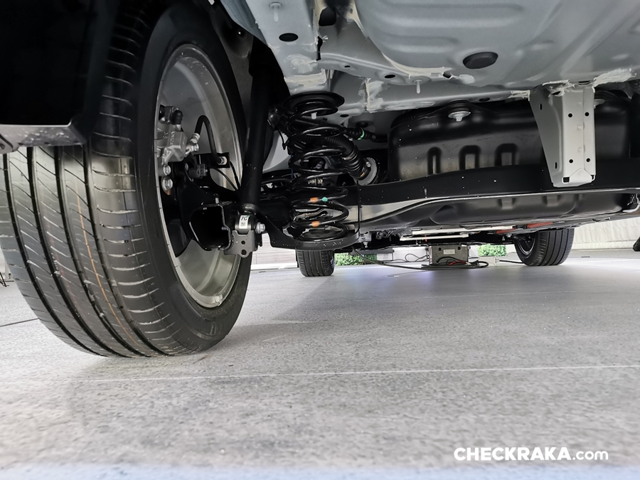 มาถึงระบบช่วงล่างที่ถูกปรับให้มีความ "นุ่มและหนึบ" อย่างลงตัวจากด้านหน้าแม็คเฟอร์สันสตรัท พร้อมเหล็กกันโคลง ด้านหลังเป็น "ทอร์ชั่นบีม" พร้อมเหล็กกันโคลง ที่ออกแบบให้โครงสร้างใหม่ของทอร์ชั่นบีมมีความแข็งแรงพร้อมด้วยบูชขนาดใหญ่ และเหล็กกันโครงขนาดใหญ่ ปรับเอียงองศาของโช๊คอัพมากขึ้น เพื่อรับน้ำหนักและลดแรงกระแทกได้มากขึ้น ซึ่งนับเป็นการพัฒนาระบบทอร์ชั่นบีมให้มีสมรรถนะเทียบเท่ากับช่วงล่างแบบอิสระมัลติลิงค์ในต้นทุนไม่สูงนัก