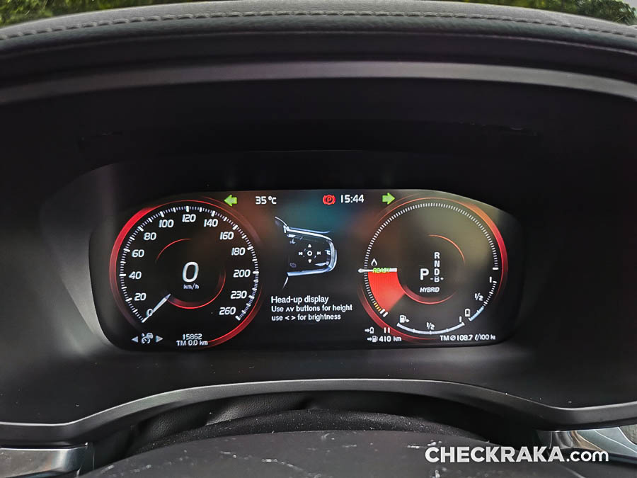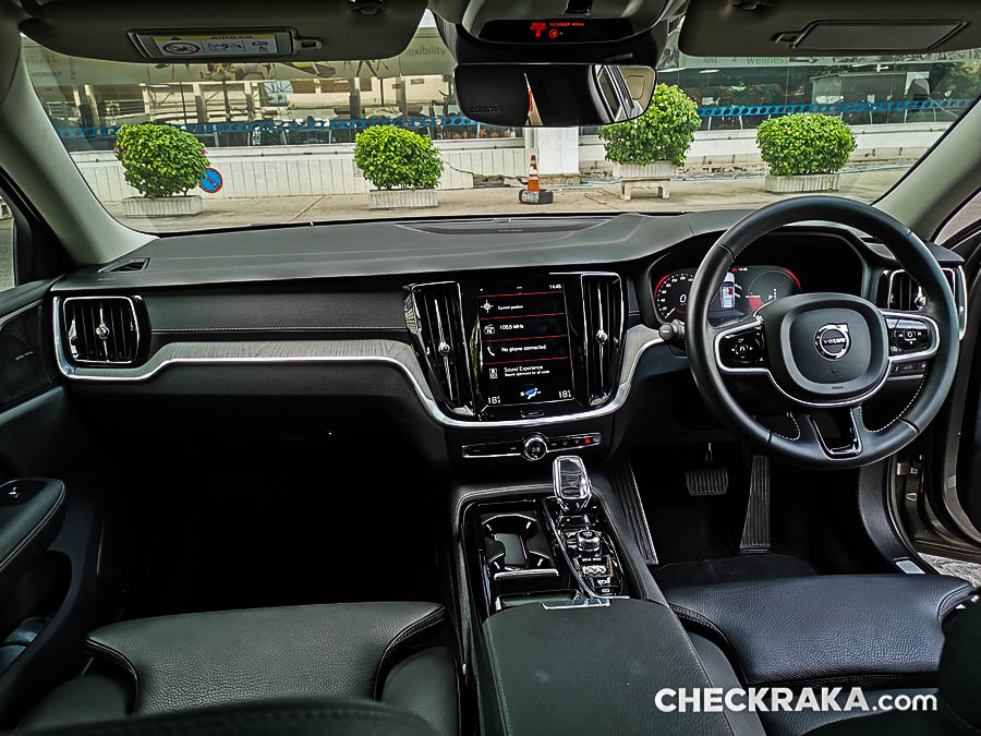 พื้นที่เหนือศีรษะขึ้นกับการปรับความสูง-ต่ำของเบาะ แต่ในครั้งนี้ผู้ทดสอบปรับระดับกลาง ๆ เนื่องจากหลังคาของ วี60 นั้นต่ำลงมากพอสมควร จึงทำให้หัวติดด้านบนมากเกินไป ตรงคอนโซลกลางนั้นมีขนาดหนาพอสมควรจึงกินพื้นที่ด้านข้างค่อนข้างเยอะ เข้าใจว่าใต้คอนโซลกลางนั้นมีระบบขับเคลื่อนไฮบริดอยู่ เพราะเมื่อเปิดที่เท้าแขนขึ้นมาไม่มีช่องใส่ของ มีเพียงแผ่นวางตื้น ๆ พอวางโทรศัพท์, แว่นตา นาฬิกา ปากกา ฯลฯ ที่เล็ก ๆ ได้เท่านั้น