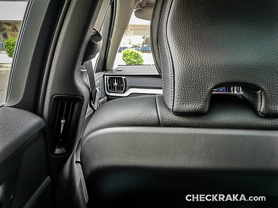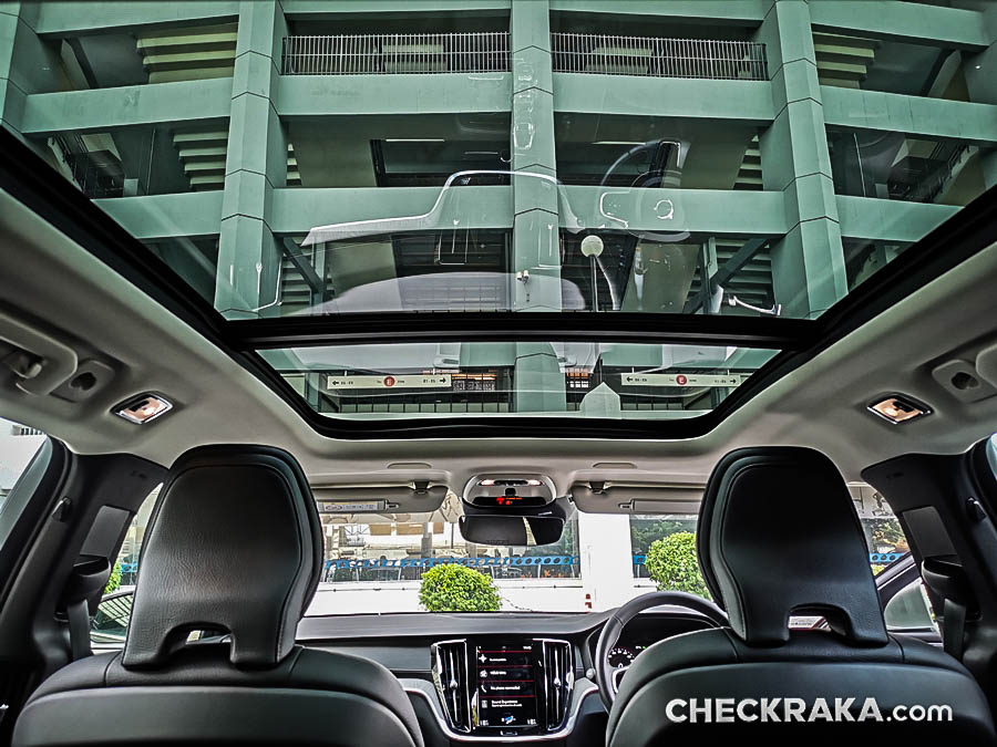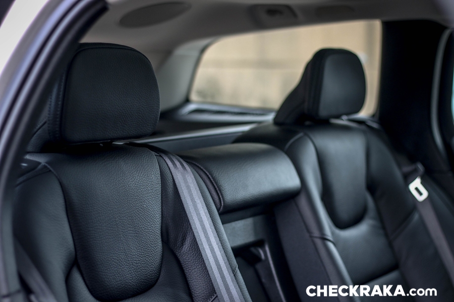 เบาะตอนหลังให้ผิวสัมผัสที่นุ่มสบาย และไม่เป็นหลุมลึกมากนัก ทำให้ไม่อึดอัด ส่วนตรงกลางเกือบเสมอกัน ทำให้คนนั่งตรงกลางไม่สูงเกินไปอีกด้วย และสามารถพับได้ 60/40 เพิ่มความจุได้ถึง 1,441 ลิตร และมีที่บังตาสำหรับสัมภาระท้ายอีกด้วย ส่วนหลังคาแก้วยาวถึงผู้โดยสารหลัง เปิดได้ทั้งแบบดระดกขึ้นและเลื่อนเปิดไปด้านหลัง พร้อมม่านบาง ๆ บังแสง ซึ่งตรงนี้อาจมีความร้อนเข้ามาบ้าง เพราะแดดเมืองไทยโหดกว่าสวีเดนเยอะ!