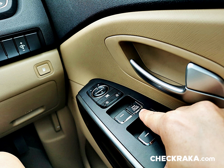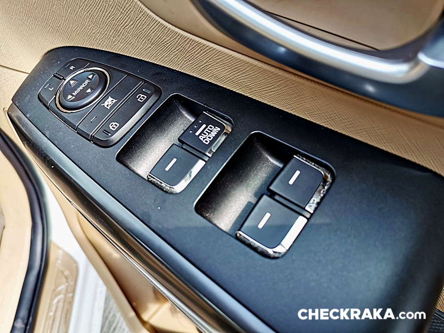 ทางด้านฝั่งประตูคนขับมีสวิตช์กระจกมองข้างที่ปรับไฟฟ้าแต่ไม่มีระบบพับไฟฟ้า สวิตช์เปิดกระจกไฟฟ้าด้านคนขับแบบ Auto Down เท่านั้น ตอนขึ้นต้องดึงค้างเอาไว้ พร้อมด้วยสวิตช์สั่งการล็อค-ปลดล็อคประตูที่มีให้ทั้งฝั่งคนขับและข้างคนขับ