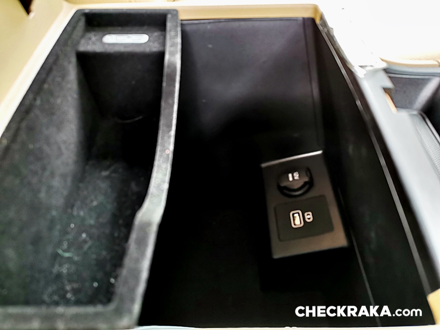 คอนโซลกลางขนาดใหญ่กล่องใต้ที่เท้าแขนจุของได้เยอะ ใส่กล้องถ่ายรูปได้สบาย มีหลุมไว้วางของเยอะ และแผงประตูด้านข้างทั้งฝั่งซ้ายและขวาของตอนหน้ามีช่องวางของอีกเพียบ อันนี้ถือว่าดีสำหรับผู้ที่มีสมบัติชิ้นเล็กชิ้นน้อยเยอะ