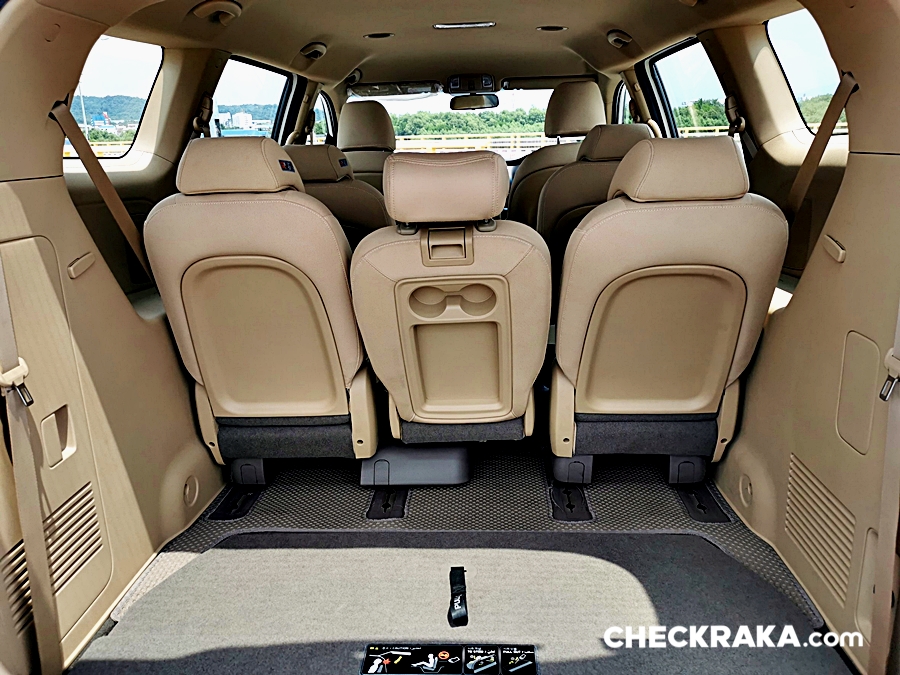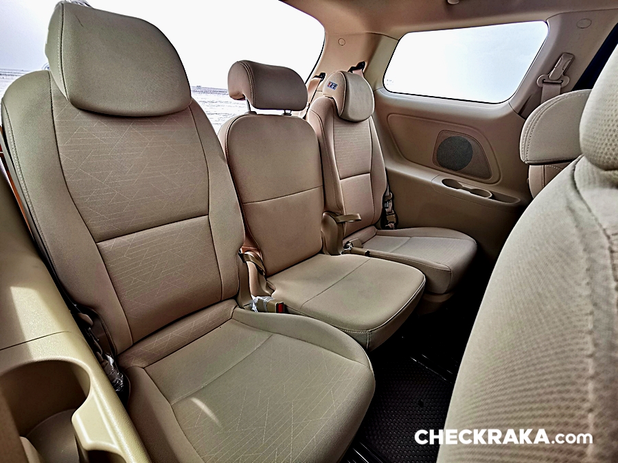 ในส่วนของผู้โดยสารแถวที่ 2, 3 สามารถปรับเลื่อนเบาะได้ทั้งหน้า-หลัง และเบาะกลางพับเป็นที่วางแก้วน้ำและยังพับเก็บได้เป็นช่องทางเดินได้ด้วย ส่วนเบาะแถวที่ 4 นั้น น่าจะเป็น "เบาะเสริม" เผื่อไว้สำหรับเด็กเล็ก ๆ หรือน้องหมาน้องแมวและสัมภาระอื่น ๆ แต่ถ้าผู้ใหญ่จำเป็นต้องนั่งก็พอที่จะปรับเลื่อนเบาะแถส 2 - 3 ให้มีพื้นที่สำหรับแถวที่ 4 ได้เช่นกัน แต่อาจจะต้องจอดแวะพักบ่อย ๆ หน่อย