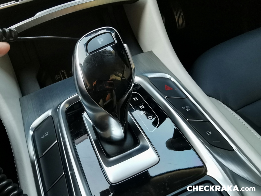ระบบเกียร์ 10 สปีดจะแบ่งเป็นของเครื่องยนต์ 6 สปีด และมอเตอร์ไฟฟ้า 4 สปีด เพื่อให้ทำงานสอดคล้างกันต่อเนื่องมากที่สุด พร้อมชุดเฟืองตัดต่อกำลัง 2 ระบบเข้าด้วยกันอย่างนุ่มนวล นั่นคือ แม้ขับด้วยมอเตอร์ไฟฟ้าแต่ก็มีอัตราทด 4 สปีด จากรถไฟฟ้าทั่วไปที่มีเพียง 1 หรือ 2 สปีด