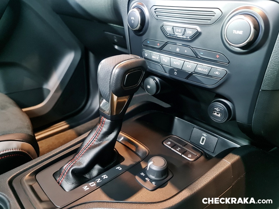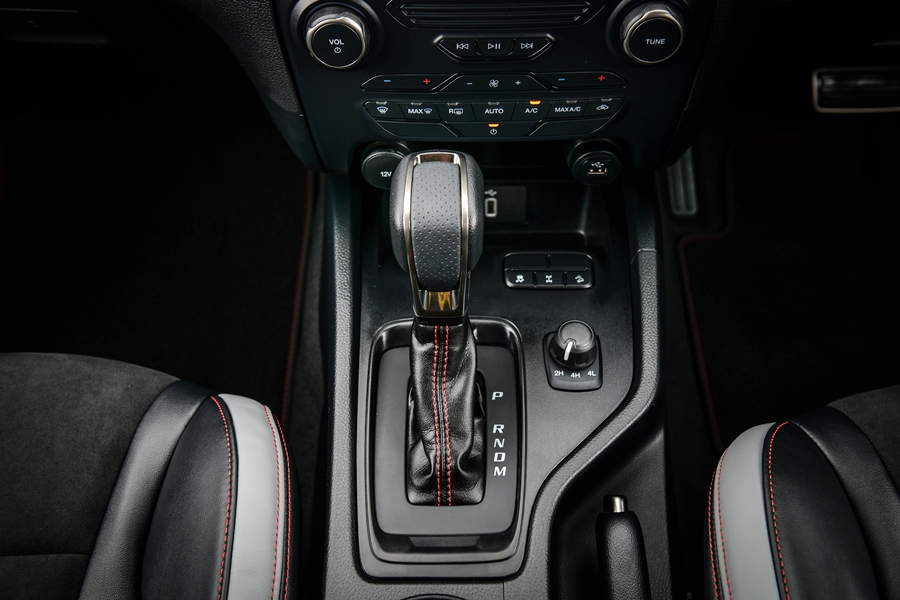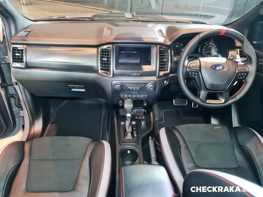 Over the Top รอบคัน เพิ่มความดุดันด้วยชุดแต่งสีดำพร้อมโรลบาร์แบบยาว ชุดหูลากหน้ารถสีแดงสไตล์สปอร์ต และโลโก้ฟอร์ดสีดำบนฝาท้ายกระบะ ภายในสไตล์สปอร์ตพร้อมลุยเต็มขั้น ปรับโฉมด้วยตะเข็บด้ายสีแดงบนพวงมาลัยและแผงคอนโซล วัสดุตกแต่งแผงคอนโซลและแผงประตูลายไฮโดรกราฟิก และตกแต่งมือจับประตูภายในสีดำ แบล็ก แอลลีย์ ขยับอีก