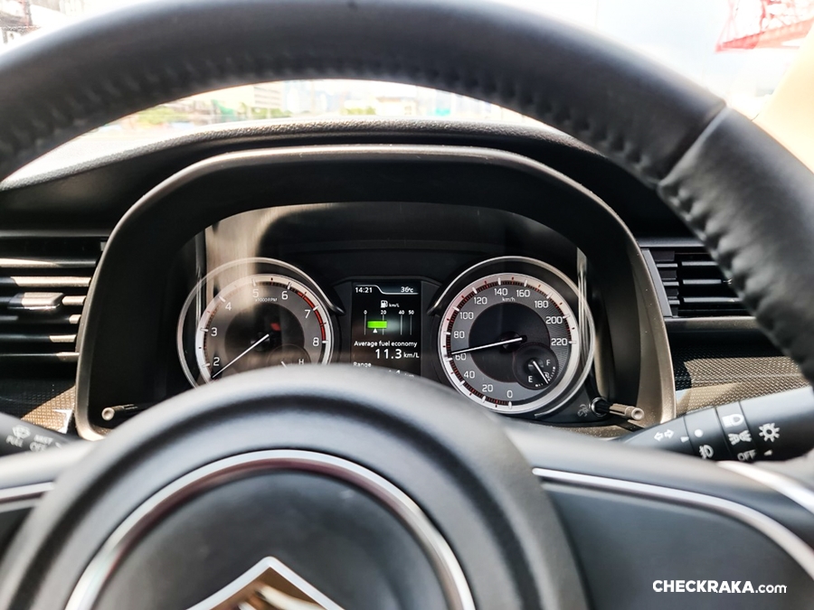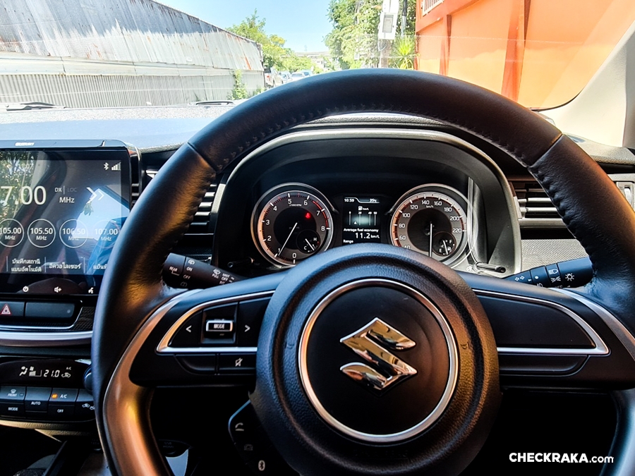 สำหรับหน้าจอแสดงผลหลังพวงมาลัยมีขนาด 7 นิ้ว แบบ LCD มาตรวัดยังเป็นแบบเข็ม แต่มีช่องแสดงผลอัตราสิ้นเปลืองน้ำมันแบบดิจิตอล ตรงกลาง เป็นการผสมผสานที่ไม่เลว และแสดงผลค่าต่างๆ ครบครัน พวงมาลัยเป็น D-Shape ปรับระดับขึ้น - ลง ได้ แต่สำหรับผู้หญิงตัวเล็กในท่านั่งอาจมีปัญหาเล็กน้อย เพราะตัวเบาะที่ถูกปรับให้ดันขึ้นเพื่อให้เราเห็นนอกรถนั้น ปลายเบาะดันช่วงหัวเข่า ทำให้นั่งไม่ค่อยสบายเท่าที่ควร การขับขี่ทางไกลอาจเมื่อย จำเป็นที่จะต้องแวะพักยืดเส้น ยืดสายบ้าง แต่ก็คงไม่มีปัญหาอะไร ถ้าใจเราอยากไป