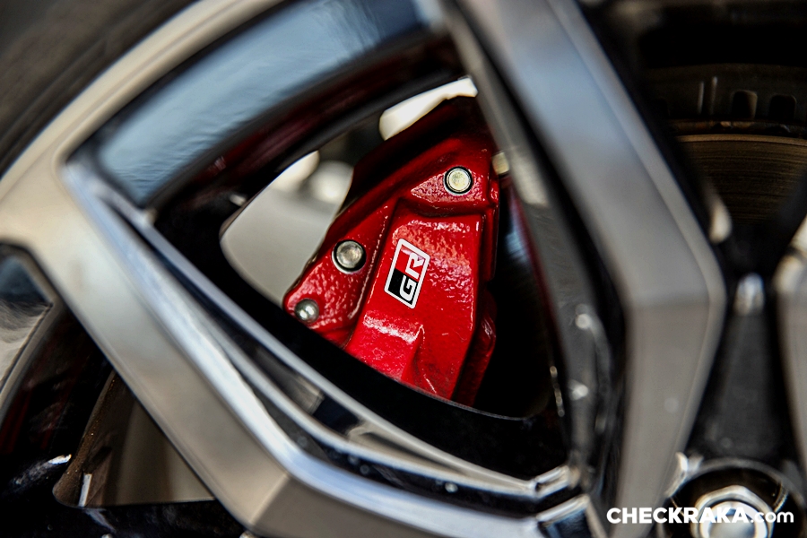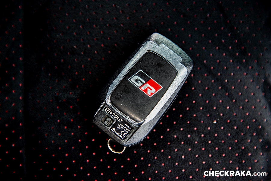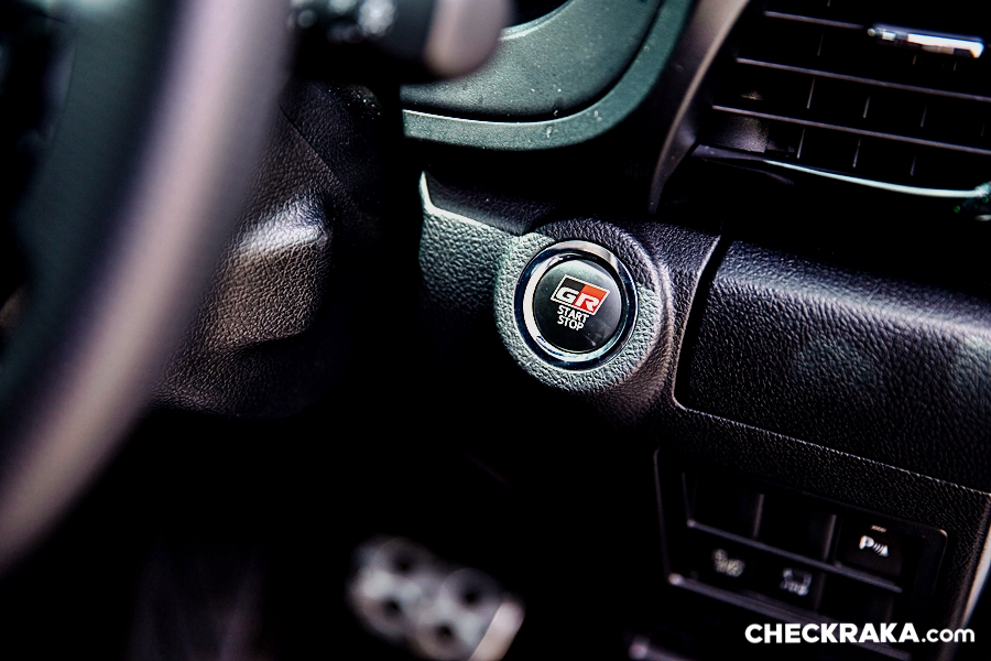 ภายในดีไซน์สปอร์ตโทนสีดำสลับแดง ตกแต่งด้วยสี Smoke silver พร้อมสัญลักษณ์ GR ให้ความรู้สึกสปอร์ตสไตล์รถแข่ง แถมด้วยเบาะนั่ง Suede แบบเจาะรู และหนังสังเคราะห์เดินด้ายตกแต่งสีแดง พร้อมสัญลักษณ์ GR ปุ่มสตาร์ทสัญลักษณ์ GR พวงมาลัยดีไซน์สปอร์ต พร้อมหน้าปัด และระบบสตาร์ทอัจฉริยะ Push start พร้อมสัญลักษณ์ GR แป้นคันเร่งและเบรกแบบสปอร์ต แต่ว่ากระจกมองหลังยังปรับหลบแสงด้วยมือ