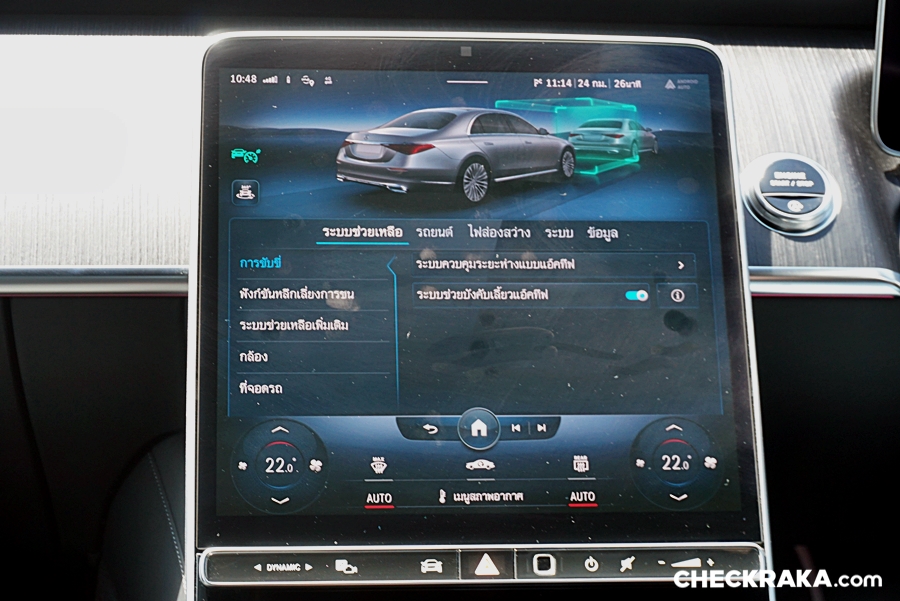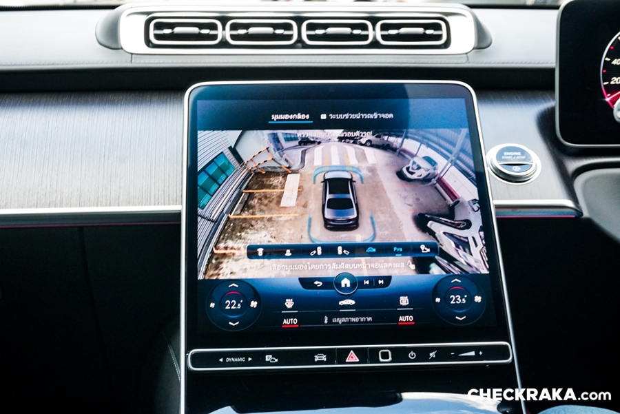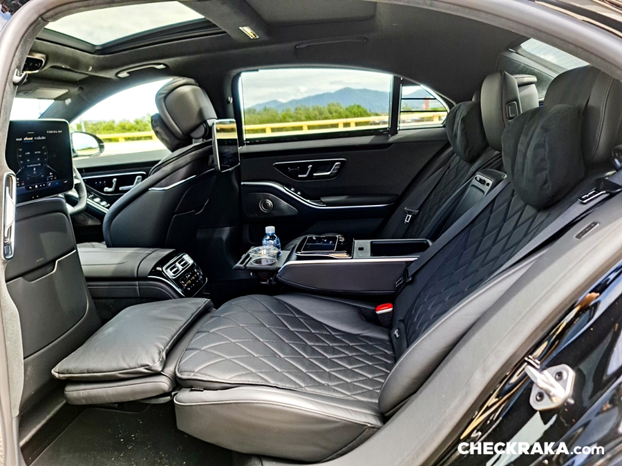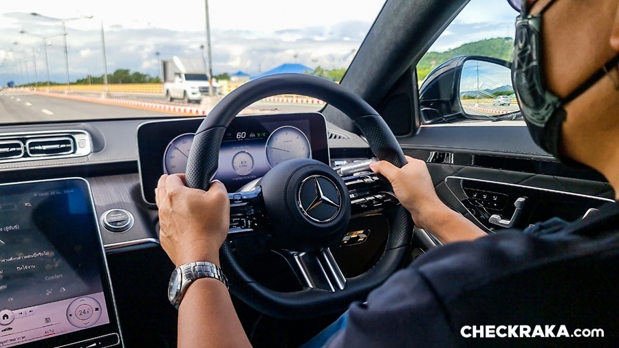 ทัศนวิสัยดีมากแม้จะเป็นรถคันใหญ่แต่เมื่อเข้าไปขับจะรู้สึกว่าคันพอ ๆ กับ E-Class และมีตัวช่วยในการขับขี่อีกเพียบครับ ทั้งระบบช่วยเตือนออกนอกเลน เตือนการชนด้านหน้าพร้อมเบรก ระบบควบคุมความเร็วแปรผัน กล้องรอบคันพร้อมเซ็นเซอร์ขยันเตือน และมีระบบช่วยจอดรถอัตโนมิตมาให้อีก โดยลืมภาพเดิม ๆ ที่ว่า "S-Class ขับใหญ่ขับยาก" หรือ "ต้องมีคนขับรถถึงจะดี" ไปได้เลยครับ จะนั่งหลังในวันทำงานหรือไปประชุมสำคัญก็สะดวก และถ้าจะขับท่องเที่ยวเองในวันหยุดกับครอบครัวก็สะดวกสบายและสนุกเร้าใจปลอดภัยไม่แพ้กันครับ