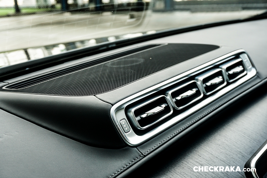 ระบบเครื่องเสียงจากลาโพง Burmester 3D surround sound system หน้าจอแสดงข้อมูลการขับขี่ความละเอียดสูงแบบ Digital Instrument clusters ขนาด 12.3 นิ้ว เลือกปรับรูปแบบการแสดงผลได้ถึง 7 รูปแบบ ปุ่มควบคุมตรงคอนโซลส่วนกลางให้เข้ามาอยู่บนหน้าจอ MBUX7 แบบทัชสกรีนขนาด 12.8 นิ้วทั้งหมด โดยใช้หน้าจอแบบ OLED (active area) เพิ่มขึ้นจากรุ่นเดิมกว่า 64% ตอบสนองฉับไว พร้อมกับระบบจดจำโปรไฟล์ผู้ขับขี่ด้วยการสแกนลายนิ้วมือ (Fingerprint scanner) และรองรับ Wiless charger ทั้งผู้โดยสานตอนหน้าและหลัง (ในรุ่น Exclusive มีแค่ด้านหน้า)