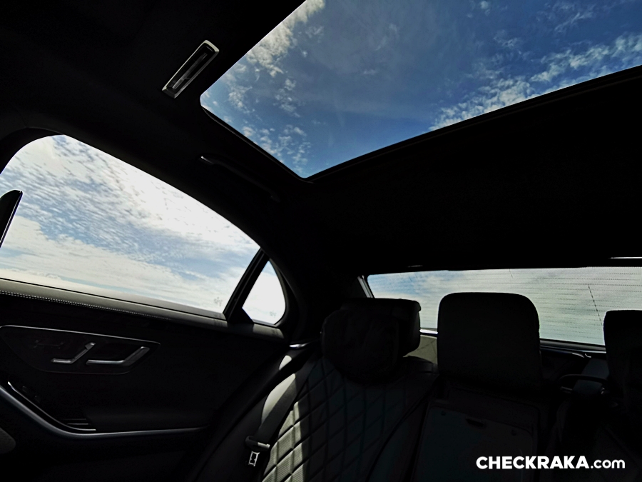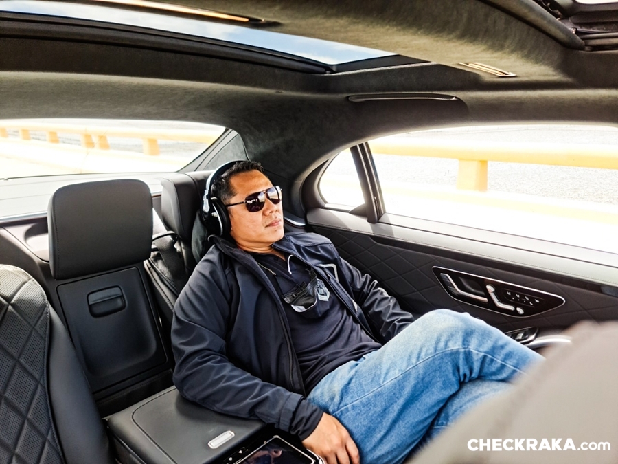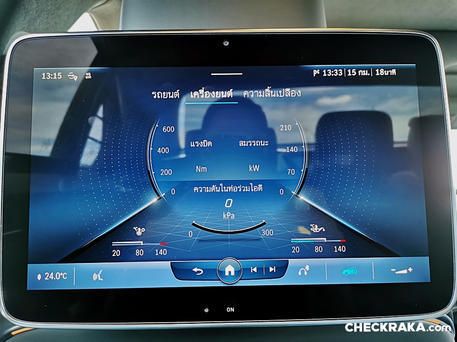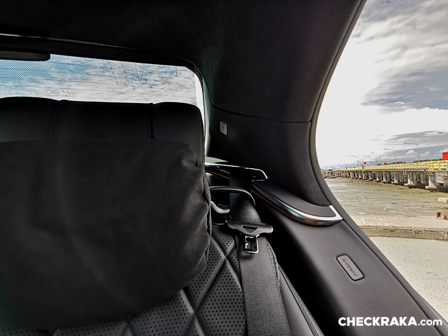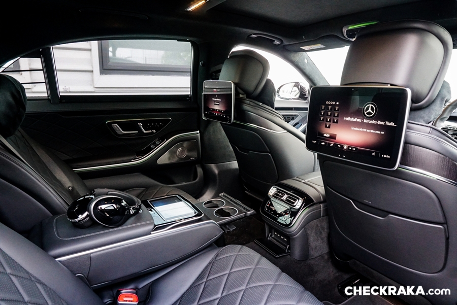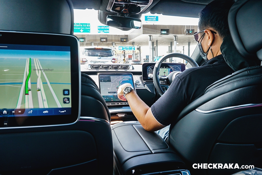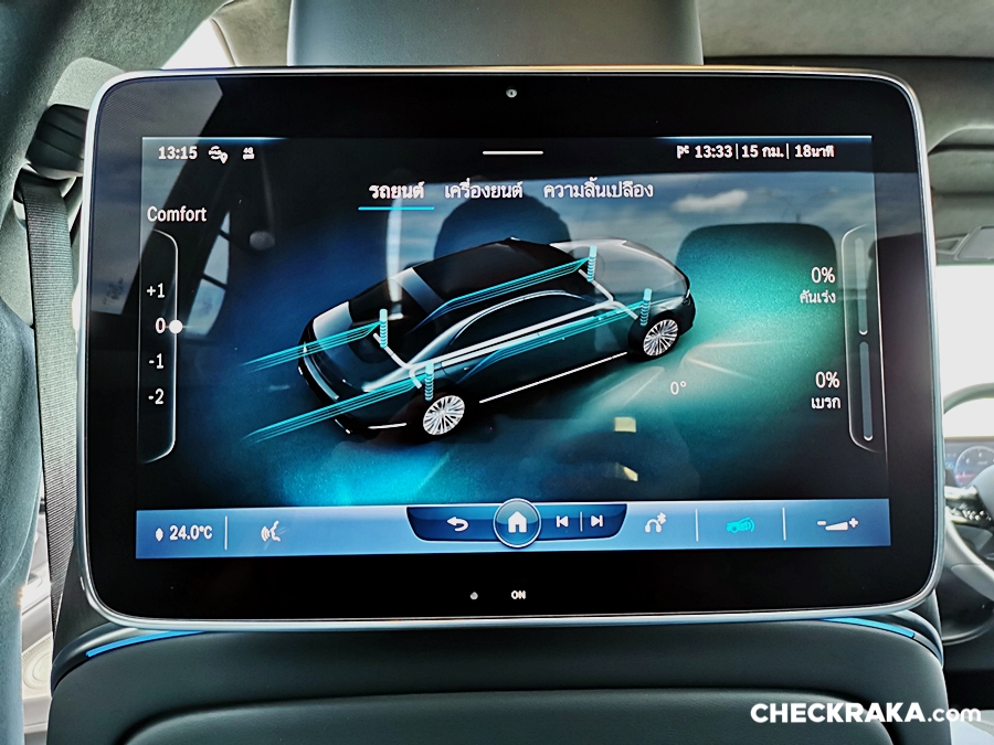 นอกจากนี้จอที่หมอนพิงทั้ง 2 ฝั่ง ก็สั่งการทำงานต่าง ๆ แยกอิสระได้ ทั้งปรับไฟ Ambient lighting เครื่องเสียง เชื่อมต่อสมาร์ทโฟนดูหนังฟังเพลง เชื่อมต่อหูฟังบลูธูทที่ให้มา 2 ชุด และยังควบคุมการเปิด-ปิดม่าน หลังคาพาโนรามิค เลื่อนเบาะหน้าข้างคนขับ ปรับโหมดการขับขี่ได้ แถมยังเช็คสถานะการขับขี่การผู้ขับแบบเรียลไทม์ได้ว่ากำลังใช้คันเร่งหรือเบรกเท่าไหร่!!