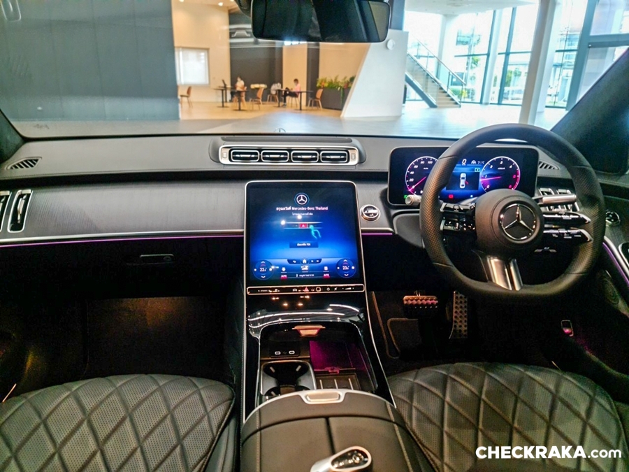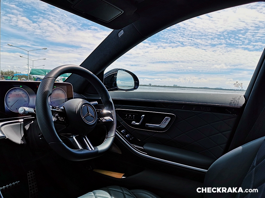 ตำแหน่งคนขับออกแบบมาให้เจ้าของรถ "ควรต้องได้ขับ" เพราะแตกต่างจากใน S-Class ยุคก่อน ๆ ที่อาจจะต้องนั่งหลังเท่านั้นถึงจะสบาย แต่ในเอสคลาสใหม่เน้นทั้งเป็นผู้นั่งและขับเองในคันเดียว ยิ่งในรุ่น AMG Premium ยิ่งให้อารมณ์สปอร์ตขึ้นกว่าเดิม ทั้งพวงมาลัยทรงสปอร์ต "AMG" และท่านั่งการขับราวกับอยู่ใน AMG GT แต่สะดวกสบายกว่า แค่มาตรวัดที่เลือกเปลี่ยนรูปแบบได้ 7 แบบก็สนุกแล้วครับ