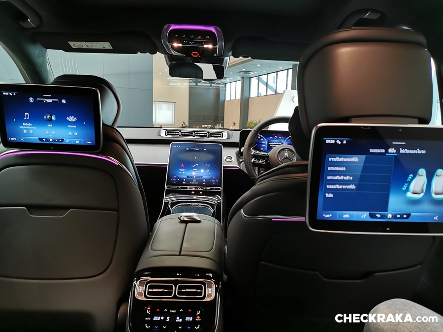 ระบบมัลติมีเดีย MBUX7 (Mercedes-Benz User Experience) เจเนอเรชันใหม่รวมทั้งหมด 5 จอได้แก่ที่มาตรวัดคนขับ จอตรงคอนโซลกลาง จอพนักพิงสำหรับที่นั่งตอนหลัง 2 ฝั่ง และแท็บเล็ตจอระบบสัมผัสขนาด 7 นิ้วตรงเท้าแขนเบาะหลังอีก 1 อัน กับระบบ MBUX High-End Rear Seat Entertainment ซึ่งจุดสำคัญคือ จอแท็บเล็ตที่สามารถใช้ควบคุมระบบต่าง ๆ ของรถยนต์ทั้งคัน โดยที่ไม่ต้องพึ่งคนขับอย่างเดียว เช่น เปิดแผนที่และส่งไปยังหน้าจอตรงกลางหรือมาตรวัดคนขับได้เพียงใช้นิ้วจิ้มและเลื่อนไปที่จอนั้น ๆ ตามต้องการ ง่ายและรวดเร็วมาก