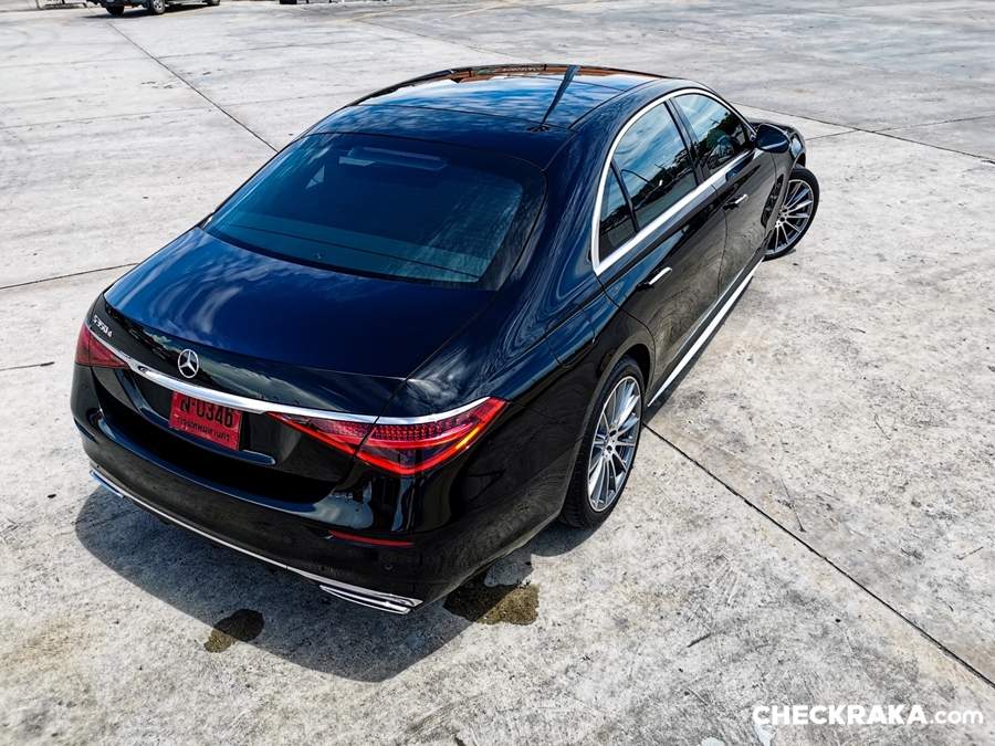 Mercedes-Benz S350d AMG Premium รถยนต์ซีดานหรูหรา มาพร้อมชุดแต่งสปอร์ตหรู AMG bodystyling ไฟหน้าแบบ MULTIBEAM LED ระยะฐานล้อที่ยาวขึ้นกว่ารุ่นเดิมมากถึง 51 มิลลิเมตร เส้นโค้งหลังคา Catwalk line ที่กดองศาของหลังคาให้ต่าลง มือจับประตูเป็นแบบไร้รอยต่อ (Seamless door handles) เมื่อเปิดใช้งานจะยืนออกอัตโนมัติ ล้อ AMG multi-spoke ขนาด 20 นิ้ว ระบบ MBUX รุ่นล่าสุด Gesture Control 2.0 จะตรวจจับการเคลื่อนไหวของมือ คฤหาสน์ติดล้อหลังนี้