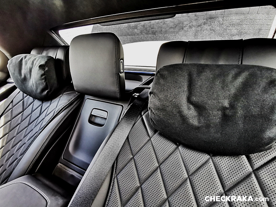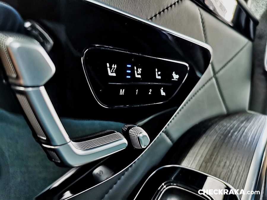 เบาะนั่งหลังนับเน้นความสะดวกสบายมากที่สุด ทั้งเบาะรองนั่ง พนักพิงที่มีหมอนนุ่ม ๆ รอรับคอ ผิวสำผัสของหนังแท้เกรดพรีเมี่ยมซับพอร์ตกับลำตัวได้อย่างสบายราวกับโซฟาหลุยส์ บวกกับที่รองน่องรับท่วงท่าในการเอนนอนได้อย่างลงตัวครับ ช่วยให้การเดินทางมีอรรถรสที่เพลิดเพลินทั้งระบบความบันเทิงต่าง ๆ สวิตช์ควบคุมที่สามารถใช้ได้ไม่ว่าจะนั่งฝั่งขวาหรือซ้าย นอกจากนี้ยังมีระบบเป่าลมอุ่นและเย็นช่วยเพิ่มความผ่อนคลายกับระบบนวดที่เรียกว่า หากถึงบ้านแทบไม่อยากลงจากรถเพราะว่าความสะดวกที่มาแบบครบ ๆ เลยครับ