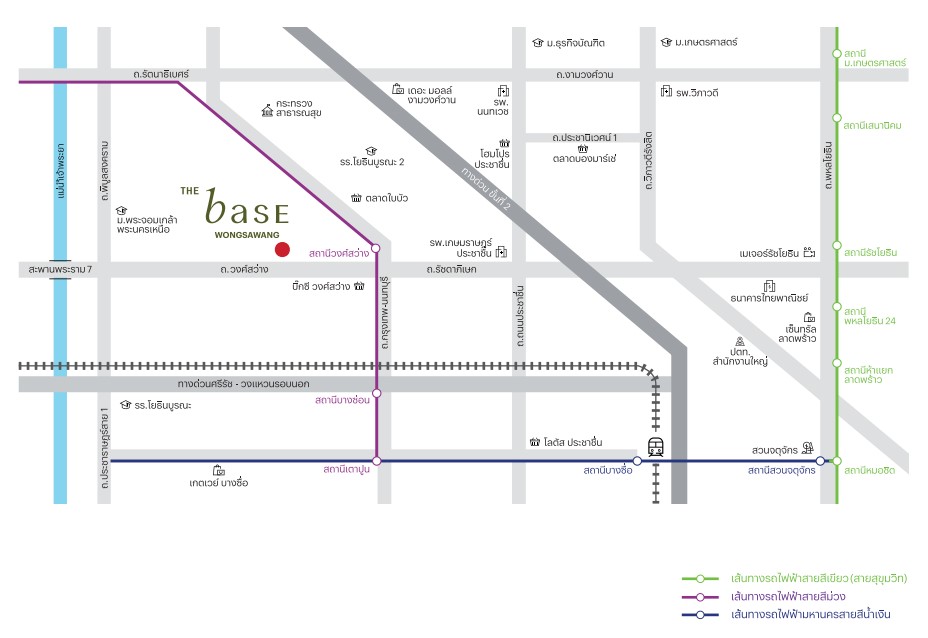 ขนส่งสาธารณะใกล้ทางด่วน (ทางด่วนพิเศษศรีรัชฯ), ใกล้รถไฟฟ้า, คอนโดติดรถไฟฟ้าสายสีม่วง MRT (คอนโดติดรถไฟฟ้าสถานีวงศ์สว่าง - 450 ม.)
