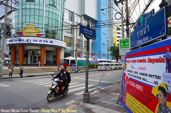 ทางเข้า "ซอยรางน้ำ" ฝั่งถนนพญาไท ตรงข้ามคือ "Century The Movie Plaza"