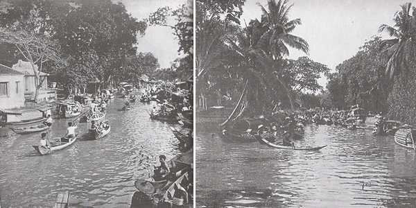 ฝั่งธนฯสมัยอดีตบริเวณคลองบางกอกน้อย ที่เต็มไปด้วยเรือพายสำหรับค้าขาย และสัญจรไปมา