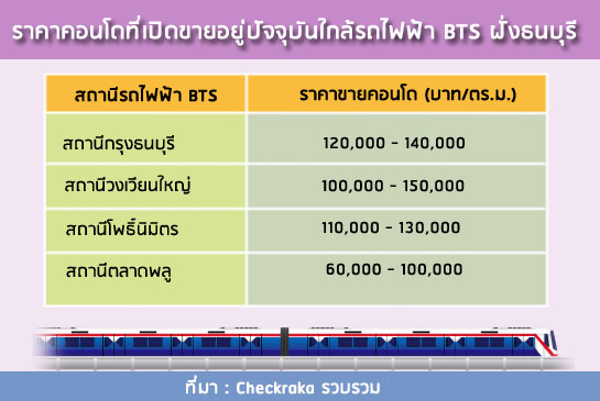 ด้วยอานิสงส์ของส่วนต่อขยายของรถไฟฟ้าต่างๆ ส่งผลให้พื้นที่ฝั่งธนฯ กลายเป็นอีกหนึ่งทำเลศักยภาพที่ได้รับความสนใจจากนักลงทุนอสังหาฯ เข้ามาพัฒนาโครงการคอนโดมิเนียมเพิ่มมากขึ้นทั้งที่ติดรถไฟฟ้าและในซอย โดยเฉพาะบริเวณสถานีรถไฟฟ้าที่ไม่ไกลจากสะพานตากสิน อย่างกรุงธนบุรี วงเวียนใหญ่ โพธิ์นิมิตร และตลาดพลู