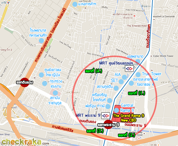 ภาพแจกแจงรายละเอียดโดยรวมบริเวณ 4 ฝั่งของแยกรัชดา-พระราม 9