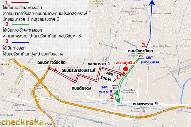 ภาพรวมเส้นทางการเดินทางเข้า-ออกตามถนนหลักโซนรัขดาฯ-สถานทูตจีน