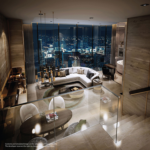 - ส่วนกลาง : Lobby Lounge, Garden, Sunken Seating, Swimming Pool, Kid's Pool, Jacuzzi, Fitness, Private Fitness, Steam Room, Sauna Room, Massage Room, Library, Cinema Room, Business Lounge, Sky Deck, Social Club & Wine Bar and Outdoor Lounge with Garden Rooftop Deck