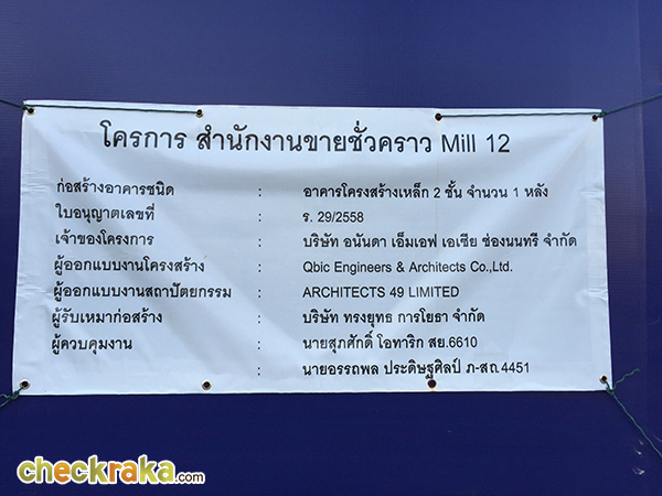เมื่อวันที่ 1 พ.ย. 58 ทางโครงการติดป้ายรายละเอียดการสร้างสำนักงานขายและใช้ชื่อ "Mill 12"