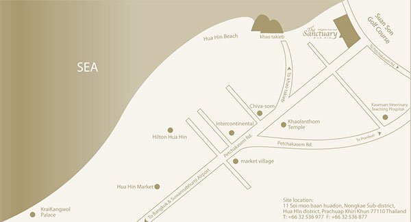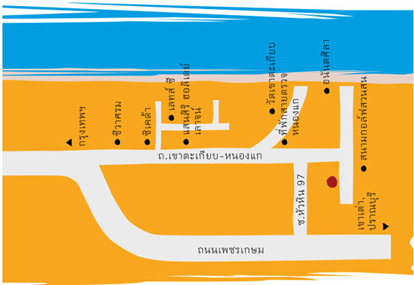 ตัวโครงการนี้อยู่ใจกลางหัวหินเลย เพราะตั้งอยู่ภายในซอยหัวหิน 96 ห่างจากทะเลประมาณ 500 ม. ก็ถือว่าไกลพอสมควรค่ะ จะต้องเดินข้ามถนนไป เนื่องจากตัวโครงการกับหาดอยู่ตรงข้ามกัน อีกทั้งยังเป็นโครงการที่ค่อนข้างเก่าเพราะเปิดตัวมาได้ 6 ปีแล้วค่ะ