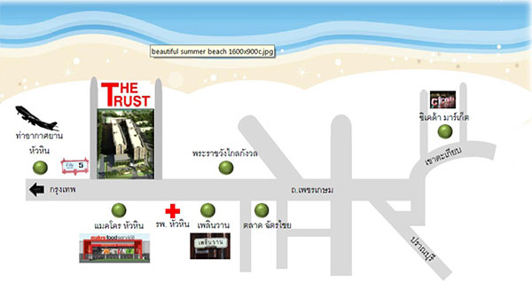 คอนโดมิเนียม สไตล์ Modern Resort ในสไตล์คอนโด เป็นโครงการที่อยู่ในเขตอำเภอหัวหิน ไม่ติดหาด แต่เดินทางสะดวกมาก ไปโครงการไม่ยากเลยค่ะ ถ้าวิ่งมาจากกทม. ก็ตรงมาอย่างเดียว ให้สังเกตว่าจะอยู่ตรงข้ามห้างแม็คโคร ตัวโครงการอยู่ตรงปากซอย 5 ติดถนนใหญ่เพชรเกษมเลยค่ะ
