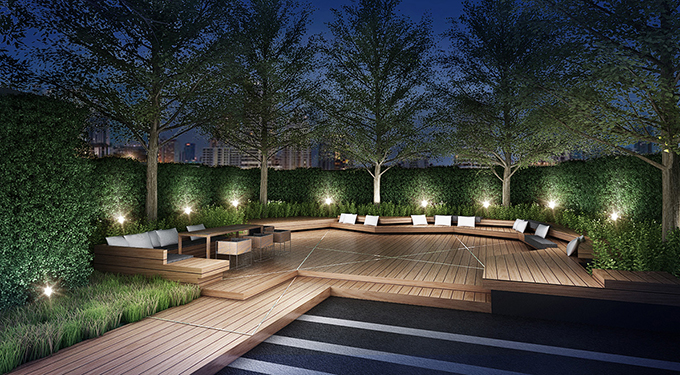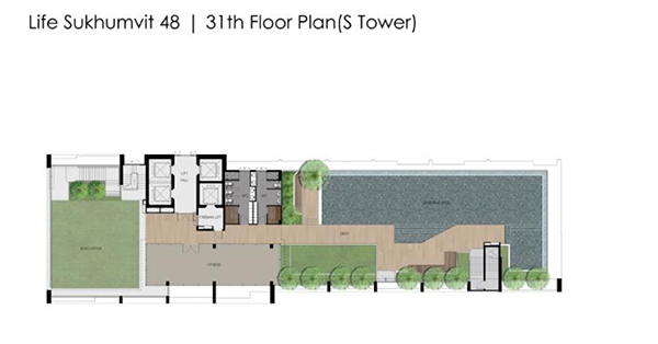 Rooftop Facility ของ ชั้น 31 (อาคาร South) มีสระว่ายน้ำ, ฟิตเนส และพื้นที่สีเขียว