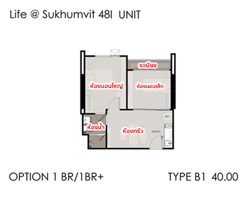 Unit Type ขนาด 40 ตร.ม. แบบ 1 Bed Plus