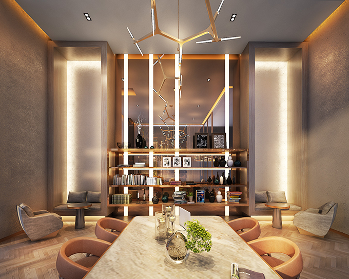 พื้นที่ Co-Working Space ตกแต่งหรูหรา แบบ Modern Chandelier Style