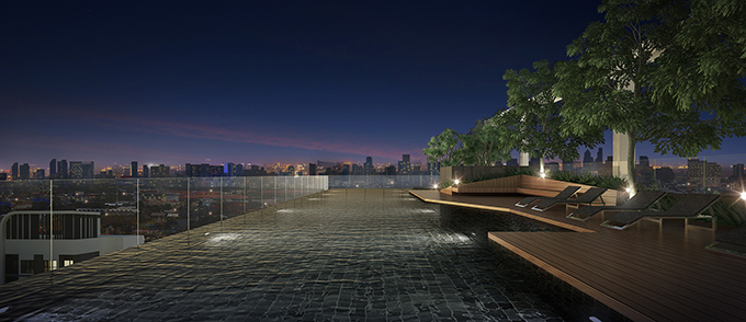 วิวชัดๆ จากสระว่ายน้ำบนชั้น Rooftop ชมเมืองยามค่ำคืนได้ 180 องศา