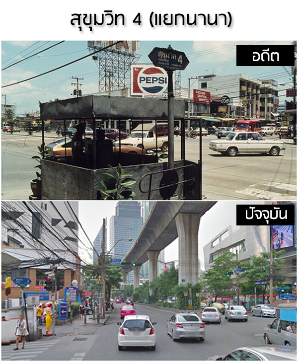 การจราจรก็คึกคักมาตั้งแต่อดีตเช่นกันค่ะ ทุ่งหญ้าสีเขียวพัฒนาเป็นตึกสูงๆ ไปแล้วในปัจจุบัน