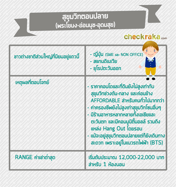 "ทำเล" เป็นปัจจัยสำคัญอันดับหนึ่งสำหรับตลาดที่อยู่อาศัยค่ะ ไม่ว่าจะซื้ออยู่เองหรือเก็งกำไรปล่อยเช่า สิ่งแวดล้อมรอบๆ โครงการเป็นอีกหนึ่งตัวช่วยในการตัดสินใจ ชาวต่างชาติเองเวลาเดินทางมาต่างบ้านต่างเมือง ความสะดวกสบายและความปลอดภัยเป็นเรื่องสำคัญค่ะ หากมองในแง่ของทำเลเด่นๆ อย่างสุขุมวิท จะเรียกว่าเป็นย่าน "เจริญที่สุด" ในกรุงเทพ และเจริญมานานแล้ว ก็คงไม่ผิดนัก มีสถานที่ราชการ, สถานศึกษา, โรงพยาบาล, สถานทูต, แหล่ง Hang Out ทั้ง Hi-End และ Street อีกหนึ่งปัจจัยสำคัญที่ทำให้สุขุมวิท "ครบ" นั่นคือความสะดวกสบายเรื่องการเดินทาง (ฺBTS และ MRT) สถานที่สำคัญและคอนโดที่ส่วนใหญ่เกาะแนวรถไฟฟ้าจะตอบโจทย์ Lifestyle ชาวต่างชาติเป็นอย่างดี