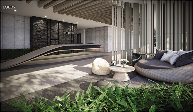 ล็อบบี้พร้อมด้วยลูกเล่นเส้นสายเลียนแบบธรรมชาติของโครงการ