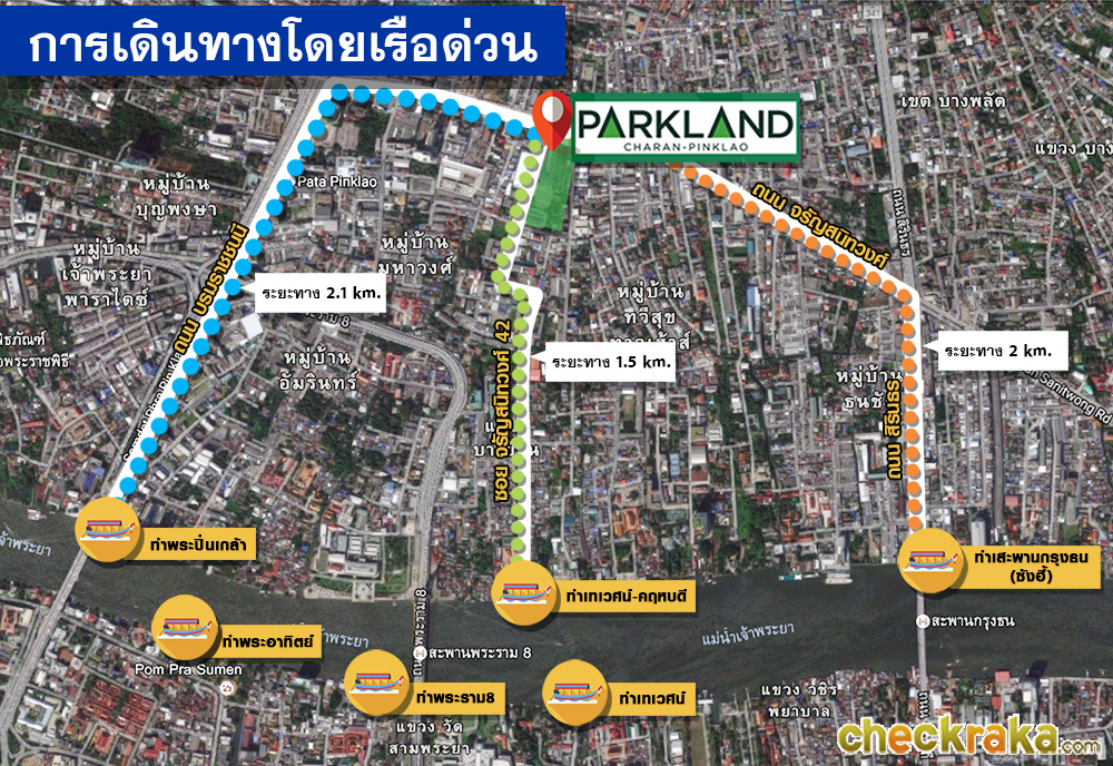 ของแถมของชาวฝั่งธนฯ อีกอย่างก็คือมีทางเลือกในการเดินทางหลีกเลี่ยงรถติดอีก 1 เส้นทางคือ การเดินทางโดยเรือล่องตามแม่น้ำเจ้าพระยา สายที่จะไปใกล้โครงการได้ก็จะมี 4 สายด้วยกันค่ะ คือ