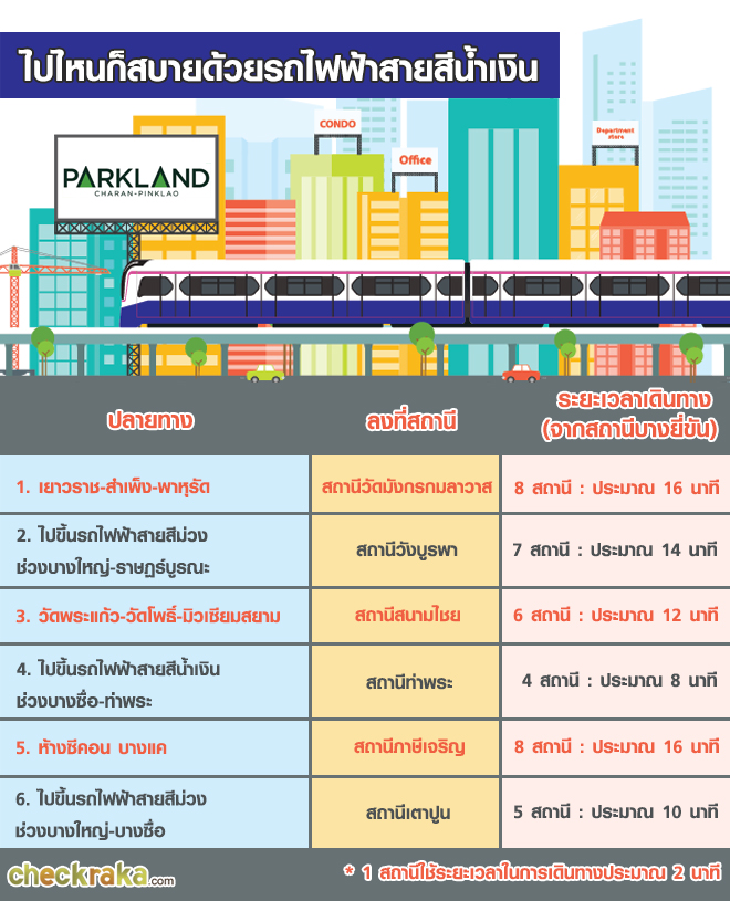 รถไฟฟ้าถือเป็นทางเลือกอันดับหนึ่งที่สามารถเชื่อมเมืองสู่เมืองหรือเชื่อมที่ทำงานได้รวดเร็ว และสะดวกที่สุด "The Parkland Charan - Pinklao" เป็นโครงการที่ตั้งอยู่ติดสถานีรถไฟฟ้าที่สุดในละแวกนั้นแล้วค่ะ 20 เมตรเท่านั้น ปัจจุบัน (28 กันยายน 59) กำลังดำเนินก่อสร้างอยู่ เป็นรูปเป็นร่างชัดเจนแล้ว และคาดว่าน่าจะได้ใช้ราวปี พ.ศ. 2563