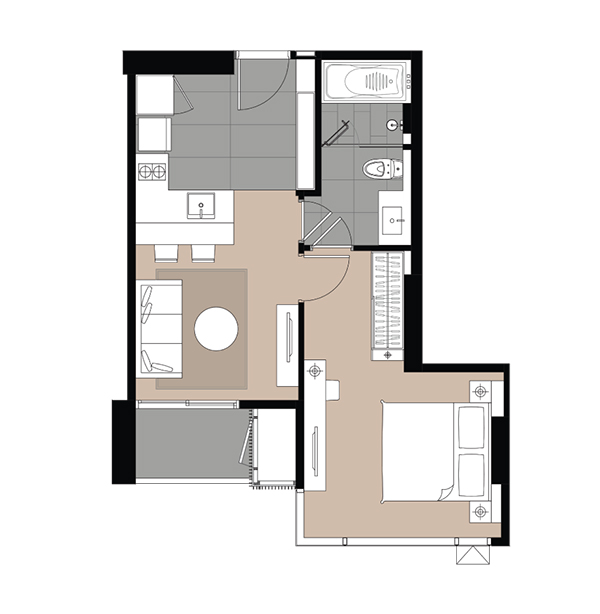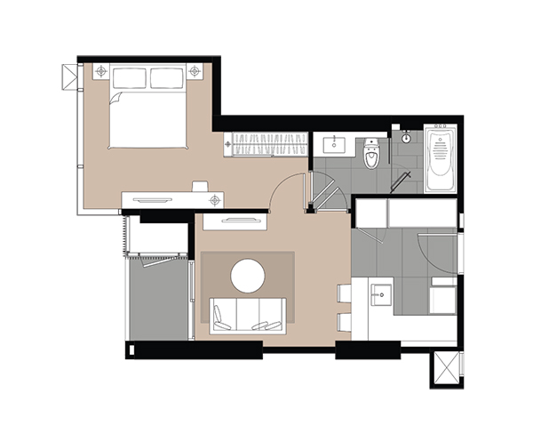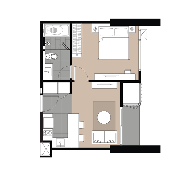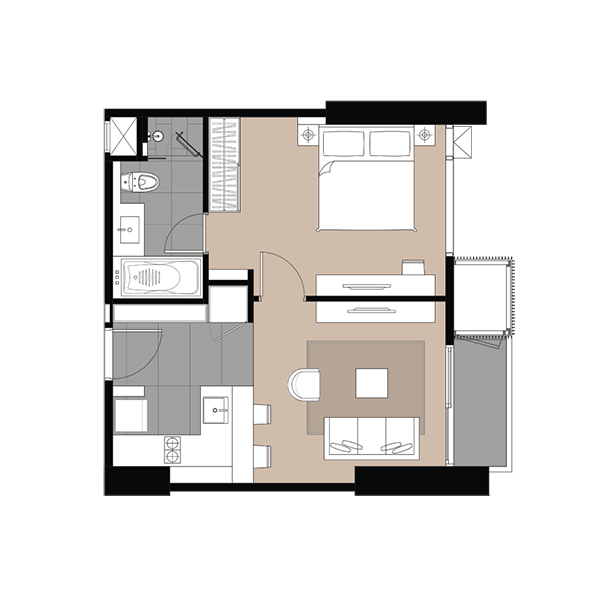 - 1 Bedroom ขนาด 42 ตร.ม. (จำนวนประมาณ 25%)
