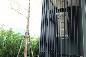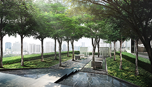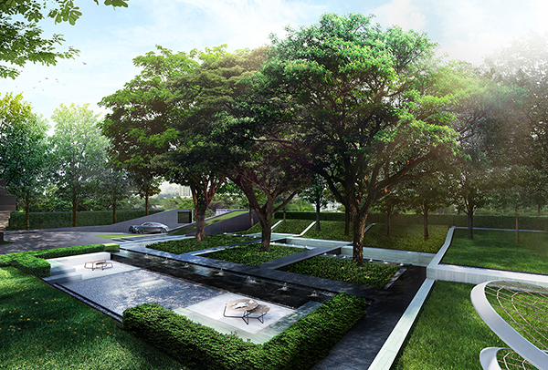 บริเวณด้านหน้าโครงการถูกออกแบบให้เป็น Enclosed Garden ช่วยสร้างบรรยากาศอันรื่นรมย์ตั้งเเต่ด้านหน้าของโครงการ โดยออกแบบให้พื้นที่สวนมีระยะกว่า 30 เมตรก่อนเข้าโครงการ ทำให้ได้ความ Privacy สูง และเชื่อมต่อภายนอกสู่ภายในอย่างลงตัว