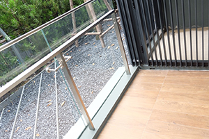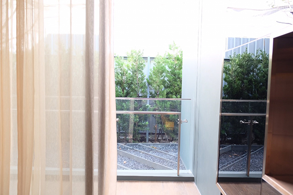 โดยส่วนของระเบียงอยู่ติดกับ Living Area ซึ่งมีขนาดกว้างพอที่จะออกมานั่งตากลมชิลๆ ได้ บริเวณระเบียงเป็นตำเเหน่งวาง compressor air ซึ่งไม่ได้ถูกนับเป็นพื้นที่ขาย ถือเป็นอีกหนึ่งข้อดี