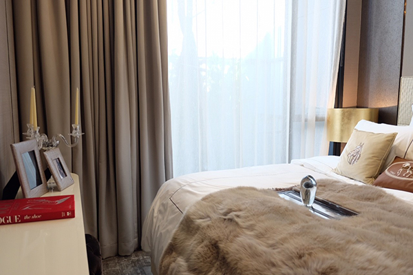จุดเด่นของห้องนอนคือ ทางโครงการออกแบบ Full Height Glass Window สูงประมาณ 3 เมตร ช่องเเสงขนาดใหญ่ ให้คุณได้เปิดมุมมองสู่บรรยากาศเมืองจากพื้นที่ส่วนตัวได้อย่างเอ็กซ์คลูซีฟ