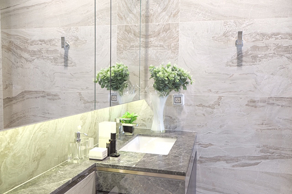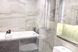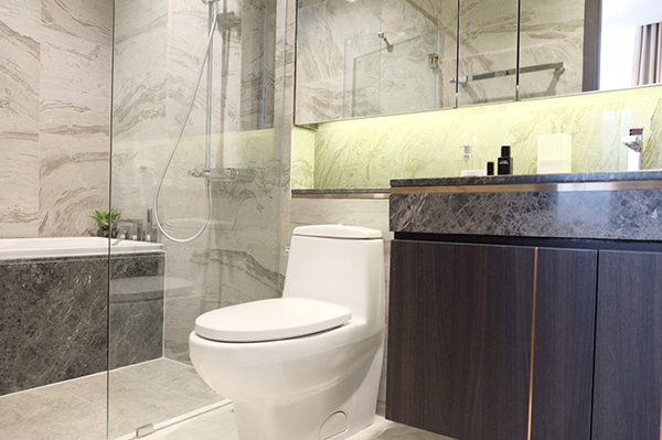 ห้องน้ำทางโครงการได้คัดสรร Brand ของสุขภัณฑ์และอุปกรณ์ในห้องน้ำนำโดย Gessi และ Villeroy and Boch และทุกยูนิตมี Bathtub และในส่วน Hand shower เป็นแบบ high-end rainfall shower columns and Thermostatic Shower Systems ระบบ Thermostatic Shower ทุกห้องอาบน้ำ ช่วยในการควบคุมอุณหภูมิของน้ำที่ออกจากหัวฝักบัวให้มีความคงที่ ลดปัญหาอุณหภูมิน้ำลดลงเนื่องมาจากการดึงน้ำภายในอาคารขนาดใหญ่