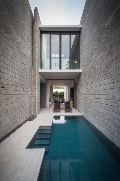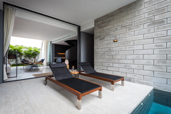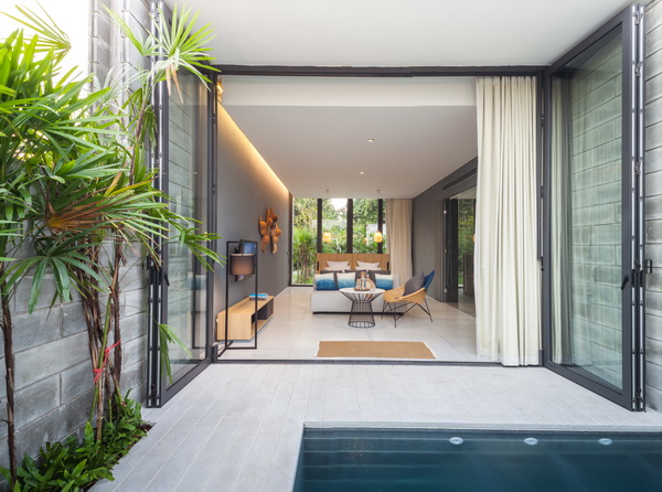 ส่วนพักอาศัยเชื่อมต่อกับสระว่ายน้ำ กั้นด้วยประตูบานใหญ่ Aluminium frame powder coat