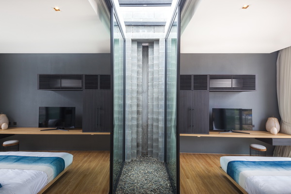กระจกด้านบนสามารถเปิดออกเพื่อรับลมทะเล มองลงมาเห็นสระว่ายน้ำ