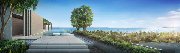 ภาพจำลองบรรยากาศบริเวณ สระว่ายน้ำบนดาดฟ้าแบบ Infinity-edge pool